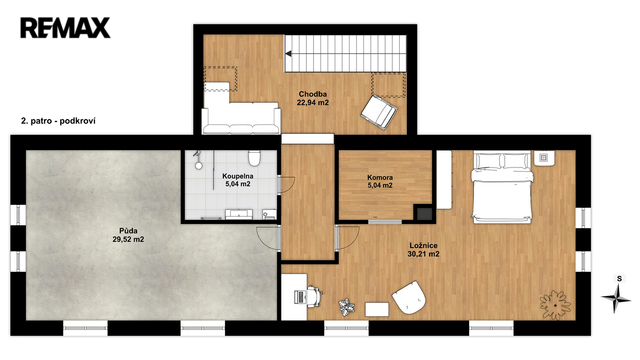 3. NP - 92,75 m2 (63,23 m2 + připravená půda pro další pokoj 29,52 m2)