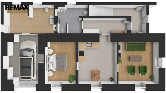 Garáž pro 1 auto, parkovací místo pro 2 auta.