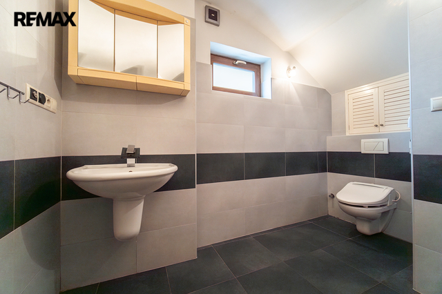 V oknech jsou venkovní rolety, příprava na zabezpečovací systém, samostatný internet a podružný elektroměr.