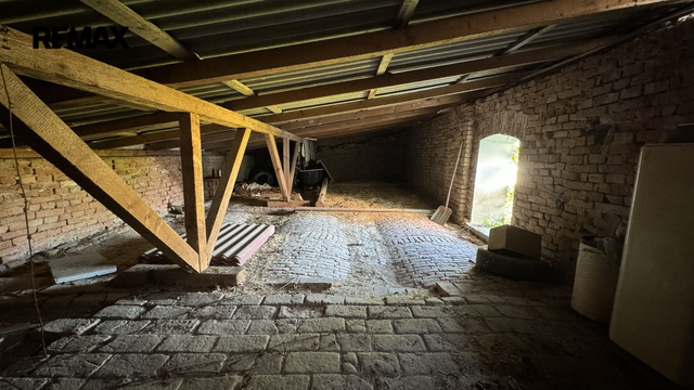 V přízemí se nachází obývací pokoj s navazujícími ložnicemi, kuchyně s pracovnou, koupelna s vanou a sprchovým koutem a technická místnost. V patře najdete další pokoj, druhou koupelnu a prostornou půdu, která skýtá možnost vybudování dalších obytných místností. Dům prošel dílčími rekonstrukcemi – plastová okna, střecha, omítky a modernizované vytápění.