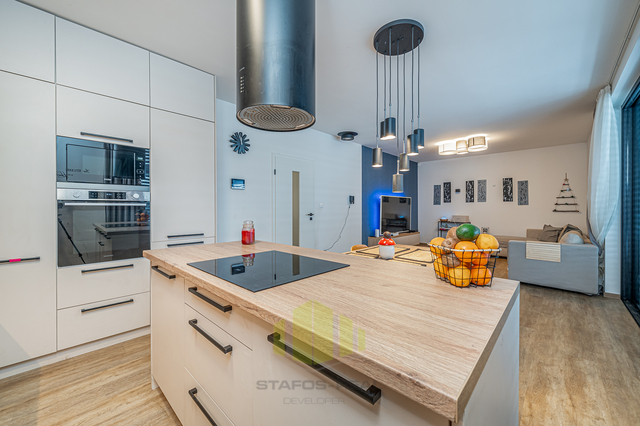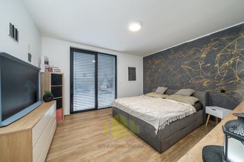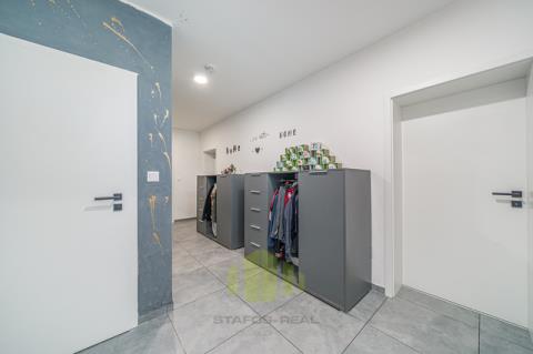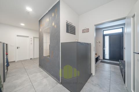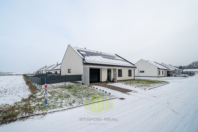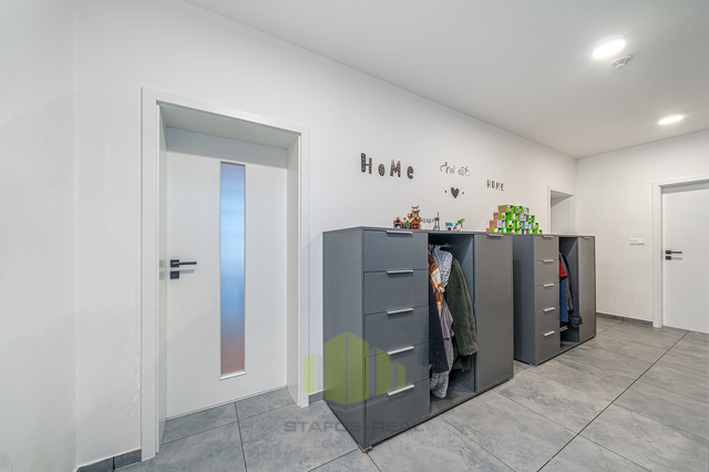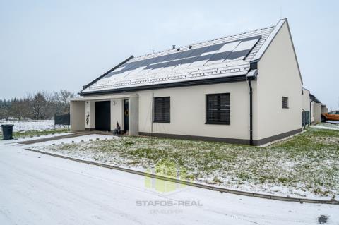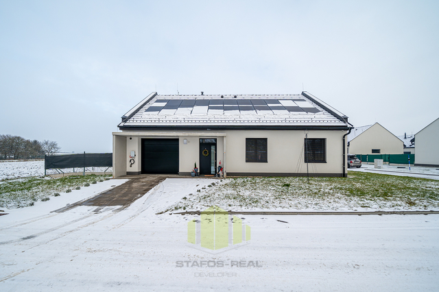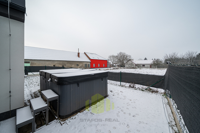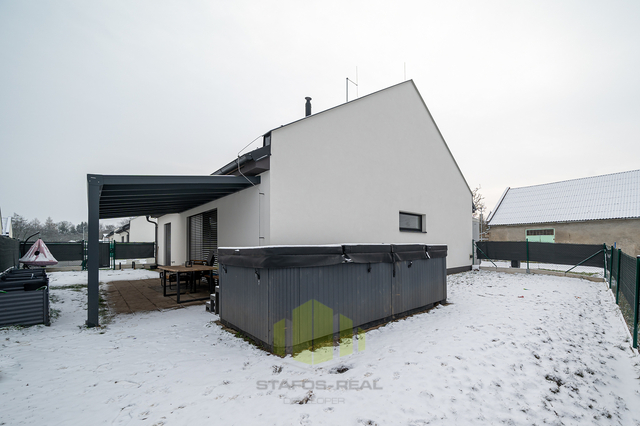 Luxusní rodinný dům s moderním vybavením v klidné lokalitě na dosah přírodě – Ústín u Olomouce Hledáte moderní, komfortní bydlení v klidném prostředí obklopeném přírodou, a přitom s výbornou dostupností do okolních měst? Tento nadstandardně vybavený rodinný dům typu bungalov v obci Ústín splní vaše očekávání. Novostavba zkolaudovaná v roce 2023 se nachází v exkluzivní lokalitě "Za humny", mimo hlavní komunikaci, a nabízí nádherné výhledy na Jeseníky a Velký Kosíř. Díky omezené možnosti další výstavby se jedná o jedinečnou příležitost pro bydlení v klidu a soukromí. Obec se nachází mimo záplavové území a disponuje výbornou dopravní dostupností – MHD i autobusová zastávka jsou vzdálené jen 2 minuty chůze. Dispozice a prostor: Rodinný dům nabízí dispozici 4+kk se zastavěnou plochou 153 m² (užitná plocha 127 m²) na pozemku o výměře 455 m². Praktické řešení interiéru zahrnuje zádveří, prostorný obývací pokoj s velkorysou moderní kuchyní, který má přímý vstup na terasu přes velkoformátový HS portál, ložnici s přístupem na zahradu, dva dětské pokoje, koupelnu, samostatné WC a garáž. Součástí domu je také pochozí podkroví pro skladování a velká terasa přizpůsobená k relaxaci či grilování. Dům dále nabízí zahradu s dostatkem prostoru pro odpočinek nebo dětské hry, kde je umístěn nový vířivý bazén značky HANSCRAFT. Špičkové vybavení a moderní technologie Při výstavbě domu byla věnována maximální pozornost kvalitě použitých materiálů a moderním technologiím: Zdivo: POROTHERM Střešní krytina: sedlová střecha Tondach Figaro Okna: hliníková trojskla s elektricky ovládanými předokenními žaluziemi NEVA Podlahy: vinylové Gerflor a keramická dlažba QUENOS Interiérové dveře: CPL značky VEKRA Sanita: prémiové prvky Ravak a Hansgrohe Dům je vytápěn elektrickými podlahovými rohožemi ECOFLOOR, ohřev vody zajišťuje elektrický bojler. Energetickou úsporu podporuje fotovoltaická elektrárna s černými designovými panely a komponenty Solax. Před garáží je připravena nabíjecí stanice pro elektromobily. V obývacím pokoji je připravena instalace krbových kamen pro útulnou domácí atmosféru. Dům je dále vybaven bezpečnostním systémem JABLOTRON 100+ včetně kamer a detektorů kouře. Je připravena optická datová síť pro rychlý internet a kabelovou televizi. Veškeré inženýrské sítě jsou k dispozici – obecní vodovod, tlaková kanalizace a elektřina. Energetická náročnost budovy je třída D (kvůli absenci denního světla v chodbě), přičemž ostatní důležité parametry odpovídají třídám A a B. Lokalita a dostupnost Obec Ústín nabízí skvělé spojení s okolními městy – Olomouc, Lutín, Prostějov, Litovel a Mohelnice. Nachází se v klidné přírodní lokalitě s výjimečnými výhledy a nabízí ideální zázemí pro moderní rodinný život. Neváhejte a přijďte se přesvědčit o jedinečnosti této nemovitosti. Pro více informací a sjednání prohlídky kontaktujte makléře.