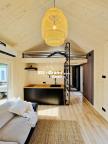 (s podkrovím). Délka – 6.4 m, šířka – 3.9 m, výška – 4.2 m, zastavěná plocha – 25 m2, koupelna – 3.9 m2, obývací pokoj s kuchyní – 15.6 m2, spací prostor – 9 m2.