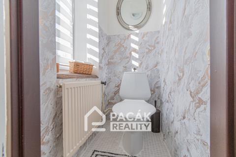 Nabízíme k prodeji ve výhradním zastoupení majitele rodinný dům v městysi Velký Újezd. Jedná se o dvoupodlažní zrekonstruovaný dům o dispozici 3+1 se stodolou, dvorem a navazující zahradou. Vstup do domu přes předsíň ze zahrady nebo z průjezdu mezi domy. Středem domu prochází prostorná hala, ze které se dostanete přes schodiště do druhého nadzemního podlaží. Současná dispozice nabízí v přízemí obývací pokoj moderně propojený s kuchyňským koutem. V přízemí prostorná komora, která je možná adaptovat na koupelnu s WC. V patře prostorná hala, 2x pokoj, koupelna a samostatné WC. Vytápění zánovním kondenzačním plynovým kotlem nebo krbem umístěným v přízemí s rozvodem tepla do ložnice v patře. Rodinný dům je moderně vybaven s designovými prvky a promyšlen do posledního detailu. Ohřev vody zánovním elektrickým bojlerem. Napojeno na plyn, elektřinu, voda z veřejného vodovodu, napojeno na kanalizaci. Parkování možné na ulici před domem nebo na vlastním pozemku přes průjezd do zahrady. Na zahradě stodola. Velký Újezd je 20km nebo 20min autem od Olomouce. V obci zastávka autobusu, škola, školka, učiliště, zdravotnické zařízení, obchod... Městys Velký Újezd se nachází v nadmořské výšce 371 m u staré obchodní cesty s brodem mezi Olomoucí a Lipníkem nad Bečvou, na pozvolně sestupujícím svahu úpatí Oderských vrchů. Pouhých 6 kilometrů od obce pramení řeka Odra. Dnes, na počátku 21. století, je Velký Újezd obcí s bohatou historií a kulturní tradicí. V současné době zde žije okolo 1415 obyvatel. Pro více informací nebo domluvení prohlídky nás kontaktujte. Nabízíme využití nejvýhodnějšího hypotečního úvěru prostřednictvím našeho hypotečního centra.