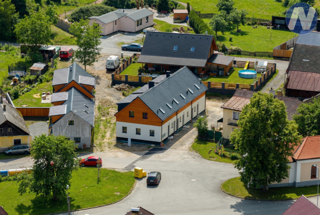 Hledáte moderní bydlení v místě, kde se snoubí klid venkova, krásná příroda a výjimečná poloha v srdci Šumavy? V nabídce jsou tři zcela nové, zděné novostavby rodinných domů o dispozici 4+kk s podlahovou plochou 112 m², které mohou být ideálním místem pro trvalé rodinné bydlení i pro víkendové pobyty. Domy jsou navrženy s důrazem na kvalitu provedení, nadčasovou architekturu a ekonomický provoz, díky čemuž představují ideální kombinaci komfortního bydlení, moderních technologií a jedinečné šumavské přírody. Domy jsou zcela nové, právě dokončené, postavené z kvalitních a tradičních materiálů s důrazem na dlouhou životnost a komfort užívání. Moderní architekturu doplňuje fasáda s obkladem z modřínového dřeva, která domům dodává přirozený a elegantní charakter a zároveň citlivě zapadá do okolní šumavské krajiny. Každý domek má samostatný vstup, vlastní sklad v přední části domu a dostatek parkovacích míst přímo před domem. Dispozice je velmi promyšlená a funkční – v přízemí se nachází prostorný obývací pokoj s kuchyňským koutem, který tvoří dominantu celého domu, dále technická místnost, samostatná toaleta a sklad. V patře jsou tři prostorné a světlé ložnice a koupelna s WC. Samozřejmostí je podlahové vytápění s plynovým kotlem, která zajišťuje příjemný tepelný komfort v celém domě. Nemovitost je navíc vybavena solárními panely, díky nimž jsou provozní náklady velmi příznivé a odpovídají současným standardům moderního a úsporného bydlení. V obývacím prostoru je zároveň připravena možnost instalace krbu, který může vytvořit příjemnou atmosféru zejména během zimních měsíců. Tato nabídka osloví každého, kdo hledá moderní, úsporné a příjemné bydlení v atraktivní lokalitě, která spojuje pohodlí každodenního života s jedinečnou atmosférou Šumavy. Pro více informací či domluvení prohlídky mě neváhejte kontaktovat.
