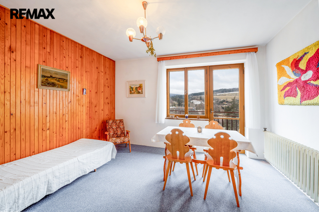 Exkluzivně nabízíme k prodeji cihlový samostatný rodinný dům situovaný na jižním svahu v žádané lokalitě ve městě Vimperk v okrese Prachatice. Dům nabízí dvě podlaží a podkroví. V každém podlaží se nachází bytová jednotka a to se samostatným vchodem. V podkroví se nachází další 4 samostatné pokoje, koupelna s vanou a samostatnou toaletu, tudíž zde by šla vytvořit třetí bytová jednotka 3+1. Z prostřední bytové jednotky je z obývacího pokoje přístupný velký rohový balkon, který můžete využít na chvilku odpočinku a relaxace třeba u šálku dobré kávy s krásným výhledem. V přízemí domu se nachází kotelna s technickou místností, kde je umístěn kotel na tuhá paliva i elektrokotel. Vytápění ústřední. Možnost zavedení plynu. Plyn vede před domem v komunikaci. Dům napojen na městský vodovodní a kanalizační řád. Okolo domu se rozprostírá zahrada, kde jsou keře, ovocné stromky a skleník. Zahrada o výměře 379 m2 k posezení, grilování, pěstování či k odpočinku, nebo jen tak, pozorovat západ slunce. Celková plocha domu se zahradou je 521 m2. Dům je přístupný z městské komunikace v klidné zástavbě rodinných domů, v dobré dostupnosti centra města a nově otevřeného nákupního centra Portin Park. Překrásný výhled na celé město, zámek a Boubín. V celém domě jsou dřevěná okna. Dům je vhodný, jak pro trvalé, rekreační či investiční bydlení se zahradou. Okolní příroda nabízí v letních měsících spoustu možností aktivního odpočinku jako je např. houbaření, pěší a cykloturistika. V zimních měsících je to např. lyžování v nedalekém cca 13 km vzdáleném lyžařském středisku Zadov. Mezi zajímavé a hodně navštěvované lokality patří např. Kvilda, Borová Lada, Modrava, rozhledna Javorník, Boubín aj. Pro více informací, případě zájmu o prohlídku nám zavolejte. Rádi a zdarma Vám také zajistíme profinancování této nemovitosti. Prodávající si vyhrazuje právo vybrat kupujícího na základě jím zvolených kritérií.