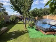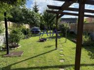 Součástí zahrady je také plocha s umělým trávníkem vhodná například pod dětský bazén (Bazén Exit 300 × 200 × 65 cm s filtrací a krytem, pořízený v roce 2025, je možné po domluvě odkoupit).