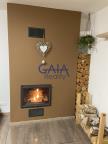 Dominantou obývacího prostoru je krbová vložka s průduchy, které rozvádí teplo do chodby/zkušebny a odkud se následně přirozeně šíří do dalších místností v domě. Kromě vytápění dřevem je dům vybaven také elektrickým podlahovým vytápěním Ecofilm-Fénix v celém domě včetně zkušebny. Velkým benefitem je fotovoltaická elektrárna o výkonu cca 12,5 kWh (30 panelů) doplněná o baterii s kapacitou 20 kWh, která v období jaro až podzim pokryje většinu spotřeby domácnosti. V domě je instalována klimatizace v obývacím pokoji, ložnici a zkušebně, přičemž v dalších pokojích v patře je připravena instalace. Dům má plastová okna s trojskly, zateplenou fasádu, střechu, stropy ve sklepech a je napojen na veřejný vodovod, elektřinu i kanalizaci, s možností opětovného připojení plynu.