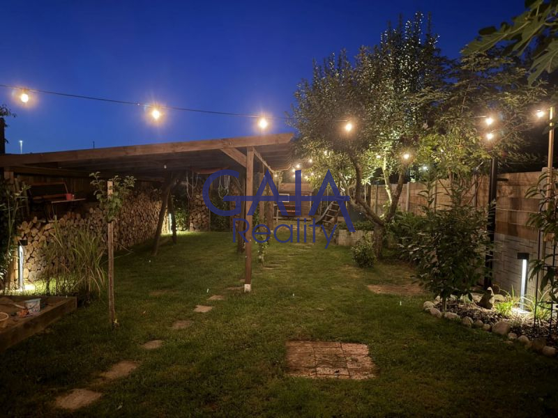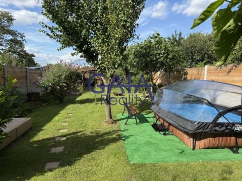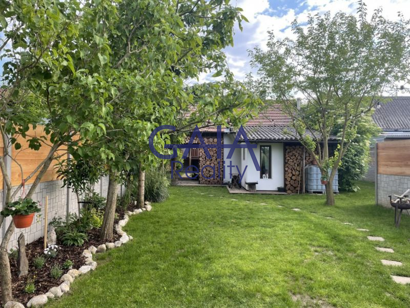 Pozemek o celkové výměře 731 m² nabízí v zadní části úplné soukromí díky nově vybudovaným betonovým plotům v kombinaci s modřínovým dřevem. Na zahradě se nachází samostatný zahradní dům s krbem, kuchyňskou linkou, který slouží jako stylová společenská místnost. Tento objekt je podsklepený, přičemž sklep je rozdělen na dvě části včetně kvelbeného sklepa a nabízí také možnost vybudování obytného podkroví.