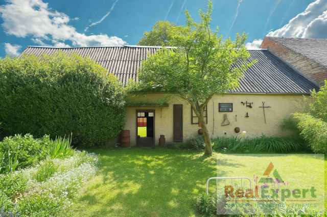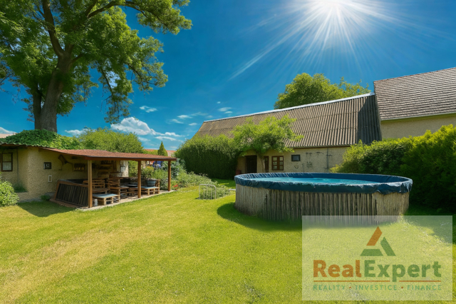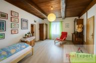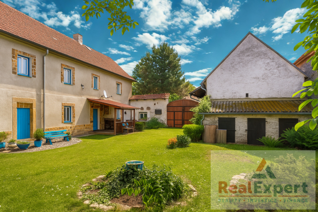 Dvoupodlažní dům o dispozičním řešení 5+1 (zastavěná plocha 19,5 x 6,8 m), s užitnou plochou cca 200 m² (+prostorná půda) a tradiční architekturou prošel v minulých letech citlivou rekonstrukcí, která zachovala původní ráz stavby. Najdete zde 4 prostorné pokoje (ložnice), stylový obývací prostor s jídelnou a krbovými kamny, vybavenou kuchyni, koupelnu a WC. Interiér spojuje přirozené materiály a moderní pohodlí – dřevěné podlahy, dekorativní trámy i výhled do zeleně. K dispozici je dále dílna, sklípek a garáž (6x3 m)