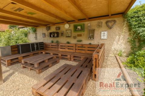 Zahrada s pečlivě udržovaným trávníkem, květinovými záhony, altánem a bazénem vytváří soukromou oázu klidu. Část pozemku lze po projednání s příslušnými úřady využít jako samostatnou stavební parcelu – ideální jako investice do budoucna.