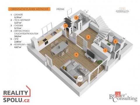 Hledáte novostavbu k nastěhování, která je postavená s důrazem na kvalitu, jako by ji developer stavěl pro vlastní rodinu? Nabízíme k prodeji moderní řadový rodinný dům o dispozici 4+kk, s obytnou plochou 120 m² a pozemkem o velikosti 387 m². Dům se nachází v závěrečné fázi výstavby – v interiéru právě probíhá instalace vnitřních dveří, exteriér čekají poslední terénní úpravy. Kolaudace je plánována na první polovinu příštího roku. Při stavbě byly použity kvalitní materiály a moderní technologie, které zajišťují komfortní a úsporné bydlení, mimo jiné: okna s izolačním trojsklem pro výbornou tepelnou i akustickou pohodu, tepelné čerpadlo jako úsporný a ekologický zdroj vytápění, klimatizace pro příjemné vnitřní prostředí i v horkých letních dnech, venkovní elektrické rolety zajišťující soukromí i bezpečí. Velký důraz byl kladen také na kvalitu interiéru – použity jsou nadstandardní podlahy, obklady, dveře i sanita. Nechybí například keramická vana, zrcadlo se zabudovaným osvětlením či napouštění vany přes přepad, tedy detaily, které zvyšují každodenní komfort bydlení. Budoucí majitel má navíc možnost přizpůsobit elektroinstalaci v kuchyni dle vlastních potřeb a priorit. Dům nabízí i dostatek praktických úložných prostor – k dispozici je spíž, prostor pod schody i půda, což ocení zejména rodina s dětmi. Bříza u Všestar je klidná obec v těsné blízkosti Hradce Králové, ideální pro ty, kteří hledají klidné bydlení s výbornou dostupností města. Autem jste: v centru Hradce Králové do 10 minut, na dálnici D11 do 5 minut, s rychlým spojením do Prahy i východních Čech, ve Všestarech během pár minut (škola, školka, obchody, občanská vybavenost). Milovníci přírody a aktivního odpočinku ocení procházkové trasy, cyklostezky i historicky zajímavé lokality v okolí. V případě zájmu vám rádi pomůžeme se zajištěním hypotečního financování.