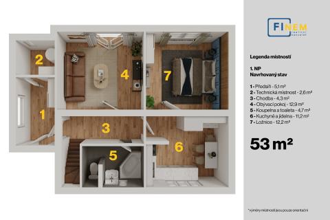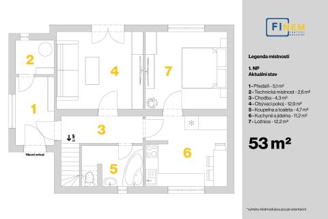 Nabízíme k prodeji samostatně stojící rodinný dům se zahradou 746 m² v obci Všestudy. Dům se nachází v klidné lokalitě v blízkosti přírody a zároveň nabízí velmi dobrou dostupnost do okolních měst. Pozemek je oplocený a poskytuje dostatek soukromí i prostoru pro odpočinek. Užitná plocha domu činí přibližně 85 m². Celková výměra pozemku je 843 m², z čehož zahrada tvoří 746 m². Vstup do domu vede do zádveří. Odtud je přístupná technická místnost s plynovým kotlem. Ze zádveří se dále vstupuje do centrální chodby. Z chodby je vstup do kuchyně, koupelny s vanou a toaletou a do obývacího pokoje. Obývací pokoj je světlý. Má přímý vstup na zahradu přes francouzské okno, díky tomu je interiér příjemně propojený se zahradou. Kuchyně je samostatná místnost, je vybavena kuchyňskou linkou na míru, plynovým sporákem a pračkou. Navazuje na ni ložnice orientovaná do klidnější části domu. Z chodby vede schodiště do podkroví. Je zde počítáno s vybudováním dvou obytných místností a samostatné toalety. Prostory jsou připravené k dokončení dle vlastních představ. Z podkroví je přístupná také půda, která slouží pouze jako menší úložný prostor. Dům je napojen na obecní vodovod, kanalizaci, elektřinu i plyn. Vytápění zajišťuje plynový kotel. Okna jsou plastová. V obytných místnostech jsou plovoucí podlahy, na chodbě a v koupelně je dlažba. Dům je plně funkční a připravený k nastěhování. Na pozemku se nachází garáž s dílnou a zahradní domek. Parkování je možné na pozemku i před domem na nově vybudovaných veřejných parkovacích stáních. Obec Všestudy je klidná a neprůjezdná. Nachází se zde samoobsluha, fotbalové a dětské hřiště, autobusová zastávka s přímým spojením do Kralup nad Vltavou i do Prahy na metro C Kobylisy. Obec se navíc postupně rozrůstá a vzniká zde nová rezidenční čtvrť, což z ní činí perspektivní lokalitu vhodnou pro dlouhodobé bydlení i investici. Velkou výhodou je blízkost zámeckého parku ve Veltrusech. Park je vzdálen jen několik minut a nabízí rozsáhlé zelené plochy, aleje, kavárnu a prostor pro sport i procházky. Do Kralup nad Vltavou se dostanete přibližně za 10 minut jízdy. Město nabízí kompletní občanskou vybavenost, parkovací dům a výborné vlakové spojení do centra Prahy. Cesta vlakem na Masarykovo nádraží trvá zhruba 35 minut. Do Mělníka je dojezd přibližně 20 minut. Nájezd na dálnici D8 je vzdálen zhruba 5–10 minut jízdy. Obchodní zóna v Kozomíně je vzdálena přibližně 8 km, tedy zhruba 10 minut jízdy autem. Nachází se zde supermarkety, drogerie, lékárna, elektro, hobby market, restaurace a další služby. Nemovitost je možné financovat hypotečním úvěrem. S jeho vyřízením Vám rádi pomůžeme. Více informací a kompletní prezentaci nemovitosti najdete na webové prezentaci: vsestudy.finemreality.cz V případě více zájemců bude nemovitost prodána nejvýhodnější nabídce. FINEM – REALITY s.r.o. | osobní a férový přístup