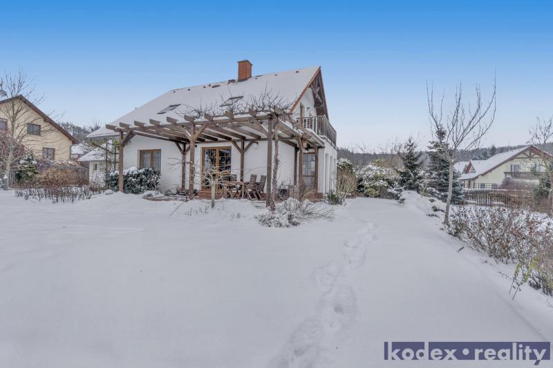 Nemovitost byla postavena ze železobetonové molitické konstrukce KEWO-LITH se zateplením. Vytápění objektu zajišťuje plynový kotel s rozvodem do radiátorů a podlahy a také krbová kamna v obývacím pokoji. Je rovněž instalován centrální vysavač. Podlahy v obou patrech jsou z pravých voskovaných parket. Pozemek je kompletně oplocen a v přední části je el. posuvná brána na dálkové ovládání, branka ke vchodu a druhá záložní brána pro zpřístupnění zahrady technikou. V zadním rohu pozemku je postaven zděný zahradní domek s krytým přístřeškem. Z obývacího pokoje je přístup na velkou terasu s pergolou. Před dvougaráží je parkovací plocha pro návštěvy.