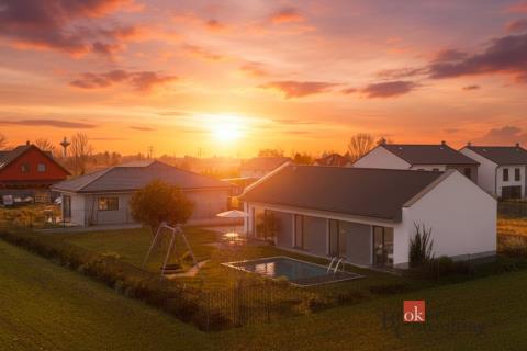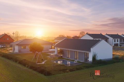 Hledáte nový domov bez kompromisů, kde si můžete doladit detaily podle sebe? Nabízíme k prodeji moderní jednopodlažní rodinný dům (bungalov) o podlahové ploše 114 m², který bude dokončen na klíč v září 2026. Již ve výstavbě ! Dům splňuje energetickou náročnost třídy B, což zajišťuje úsporný a komfortní provoz. Cena: 16 990 000 Kč Hlavní benefity • novostavba na klíč • možnost klientských změn • podlahové vytápění v celém domě • tepelné čerpadlo (vzduch) • energetická třída B • parkovací stání pro 2 auta • příprava na venkovní žaluzie / rolety Standardy domu Koupelny • obklady a dlažba do 600 Kč/m² (NIRE, max. formát 120 cm) • kompletní sanita + topný žebřík Podlahy • vinyl (click systém) do 500 Kč/m² dle vlastního výběru Dveře • interiérové bezfalcové – výběr dekoru ze vzorníku Stěny a stropy • sádrové omítky • bílá výmalba • sádrokartonové podhledy Okna a vstupy • plastová okna Hulzinger (trojskla) • bezpečnostní vstupní dveře (antracit) Technologie • tepelné čerpadlo (vzduch) • podlahové vytápění v celém domě • hlavní jistič 3×25 A • příprava na venkovní stínění Exteriér • parkovací stání 5,5 × 6 m (zámková dlažba 8 cm) • základní terénní úpravy (srovnání pozemku) Po dohodě je možné vybrat: • dekory podlah • obklady a dlažby • dveře • případné další klientské změny Cena nezahrnuje • terasu • chodníky • oplocení • venkovní osvětlení Ideální volba pro ty, kteří chtějí nový dům bez starostí, ale zároveň si chtějí doladit finální vzhled podle sebe. Skvělá kombinace moderní technologie, úsporného provozu a komfortního bydlení.