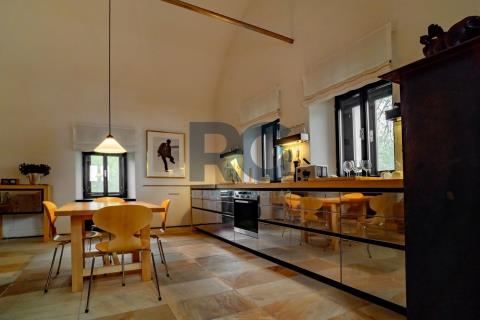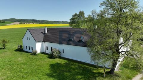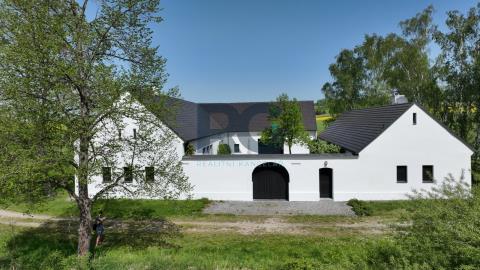 Exkluzivně Vám nabízíme k prodeji jedinečnou nemovitost - komplex 2 historických domů o výměře 1656 m2 s rozsáhlými pozemky o rozloze 75615 m2. Nemovitost se nachází v malebné lokalitě Medenice, obec Žďár, obklopené Píseckými horami a přírodní památkou Zelendárky. Usedlost s uzavřeným dvorem prošla nákladnou a odbornou rekonstrukcí, skládá se ze dvou obytných budov a garáže. Hlavní budovu o výměře podlahové plochy 230 m2 tvoří dva oddělené obývací pokoje s krbem a otevřenými stropy do štítu, z nichž je možné vyjít velkými prosklenými dveřmi na venkovní prostranství. Dále je zde kuchyně s kachlovým kamny a jídelní částí. Kuchyň je plně profesionálně vybavena spotřebiči, varnou deskou, troubou, myčkou, atd., a je velkými prosklenými dveřmi otevřená terase s dřevěnou podlahou a elektricky ovládanou markýzou, případně chodbou do zahrady. Podlahové vytápění a dobře navržená kachlová kamna poskytují teplo a atmosféru. Přípravná kuchyň je oddělena od společenské místnosti a je se zabudovanou chladničkou. Následuje šatna, úklidová místnost (prádelna) a toaleta. Soukromí majitelů zajišťují dvě samostatné ložnice s vlastními koupelnami a toaletami přístupné z každé jedné ložnice. Druhý dům se samostatným vchodem je o podlahové ploše 150 m2 a tvoří ho vybavená kuchyně s jídelní částí, obývací prostor s ložnicí a pracovnou, a koupelna s toaletou. Navazující sauna se sprchou a východem na louku za domem nabízí v zimním období ochlazení ve sněhu. Z prostranství dvora je možnost využít samostatné toalety, dále se zde nachází technická místnost domu. Všechna okna a dveře jsou zajištěna centrálním zastíněným a zabezpečením venkovními žaluziemi. Zabezpečení zajišťuje i moderní poplašný systém. Na usedlost navazují pozemky a pastviny o celkové rozloze přes 75000 m2. Tato krásná malá lokalita se nachází po levé straně při cestě ze Žďáru do Nové Vsi. Směrem východním se rozprostírají Písecké hory s Vysokým Kamýkem (626,8 m n.m.). Severovýchodně až jihovýchodně od vesnice se nachází soustava rybníků chráněných jako přírodní památka Zelendárky. Jedná se o nemovitost pro náročné klienty, vyžadující absolutní soukromí pro trvalé či rekreační bydlení. Usedlost se prodává s kompletním vybavením. Pro více informací a prohlídku nemovitosti mě neváhejte kontaktovat.