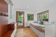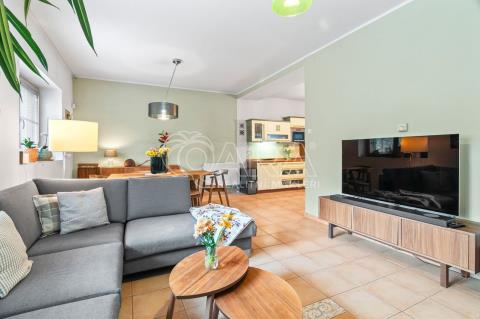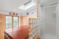 V přízemí domu najdete velký obývací pokoj s kuchyňským koutem, který je kompletně vybavený spotřebiči (horkovzdušná i mikrovlnná trouba, lednice, myčka, varná deska i odsavač par). Dále v přízemí domu najdete velkou obytnou halu, toaletu, koupelnu se sprchovým koutem a dalším toaletou a bidetem, a zimní zahradu. Je zde také velká ložnice vybavená klimatizací, elektricky ovládanými střešními okny a přístupem do domácího wellness centra.