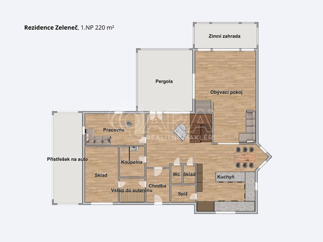 Exkluzivní rodinná rezidence v klidné části obce Zeleneč, v docházkové vzdálenosti od vlakového nádraží s přímým spojením do centra Prahy. Dům nabízí velkorysý prostor, kvalitní provedení a maximální soukromí na krásně upraveném pozemku. V klidné vilové části obce se nachází dům s plochou 540 m², situovaný na pozemku o celkové výměře 1 749 m², z toho 1 487 m² tvoří parkově upravená zahrada, která poskytuje maximální soukromí a prostor pro relaxaci i společenská setkání. Rezidence je vhodná jak pro komfortní rodinné bydlení, tak pro kombinaci bydlení a reprezentativního pracovního zázemí. Dispozice domu Suterén – 108 m² Plnohodnotné podlaží nabízí prostor pro relaxaci i zázemí pro hosty. • fitness zóna • infra sauna a solárium • samostatný apartmán s kuchyňským koutem • koupelna s vanou i sprchovým koutem • samostatné WC • technická místnost a úložné prostory Přízemí – 220 m² Hlavní obytná část domu je navržena jako reprezentativní prostor pro každodenní život i společenská setkání. • vstupní hala s vestavěným nábytkem • garáž/prostor s multifunkčním využitím, aktuálně využívané pro úpravu psů • pracovna nebo pokoj pro hosty • prostorná kuchyň s jídelnou • praktická spíž 2x • obývací pokoj s krbem • zimní zahrada s výhledem do zahrady Patro – 212 m² Soukromá zóna domu s ložnicemi a terasami. • 4x ložnice • samostatná šatna • koupelna s podlahovým vytápěním 22m2 • dvě terasy – zasklená a otevřená s výhledem do zahrady • zrekonstruovaný půdní prostor vhodný pro skladování Zahrada a exteriér Velkorysá parková zahrada vytváří atmosféru soukromého rodinného sídla. • bioklimatická pergola • plavecký SwimSpa bazén s protiproudem • altán s kuchyňským koutem • dva zahradní domky • automatická závlaha a vlastní vrt na vodu • robotická sekačka • parkování pro až 4 vozy • oplocení s odděleným výběhem pro psy • venkovní osvětlení domu i zahrady Lokalita Zeleneč patří mezi vyhledávané rezidenční lokality v blízkosti Prahy. Nabízí klidné bydlení v zeleni a zároveň výbornou dopravní dostupnost. • železniční stanice Zeleneč – cca 6 minut chůze • Praha – Masarykovo nádraží vlakem přibližně 18–20 minut • Černý Most – cca 9 km / přibližně 10 minut autem • centrum Prahy – cca 20 km / přibližně 25 minut autem • rychlé napojení na Pražský okruh a dálnici D10 Nemovitosti tohoto typu se na trhu objevují jen výjimečně. Pokud hledáte prostorné rodinné sídlo s parkovou zahradou v blízkosti Prahy, tato rezidence stojí za osobní návštěvu. V případě zájmu o více informací nebo domluvení osobní prohlídky mě neváhejte kontaktovat.