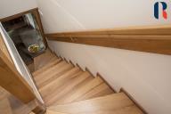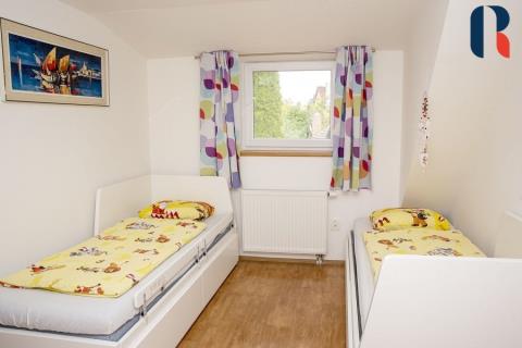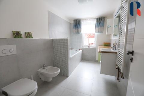 Samostatně stojící patrový dům 4+kk s podlahovou plochou 97 m2 disponuje 4 samostatnými pokoji, 2 koupelnami s wc a technickou místností. Interiér je prakticky dispozičně řešen, aby bylo využito každé místo ( vybavení na míru, vestavěné skříně), dům tak působí prostorně a zároveň útulně. Velkou výhodou je dostatek přirozeného světla v celém domě, ticho a přímý vstup z obývacích prostor na zahradu.