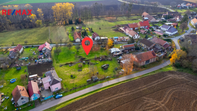 Na pozemku stojí podsklepený rodinný dům s číslem popisným o dispozici 4+1 určený k rekonstrukci a dále dvě stodoly. Dům je možné vytápět plynovým kotlem, krbovými kamny nebo kotlem na tuhá paliva. Je napojen na elektřinu a plyn. Na pozemku se též z každé strany nacházejí dvě vodovodní přípojky - jedna již osazena vodoměrem. Zdrojem vody pro dům je v současnosti jedna ze dvou studen - druhá studna se nachází na opačné straně pozemku a slouží zejména pro zalévání. V obci není zavedena kanalizace - odpad je řešen individuálně jímkou, případně se dá pomocí ČOV. Ohřev teplé vody zajišťuje elektrický bojler. Do hlavní stodoly je zavedena elektřina.