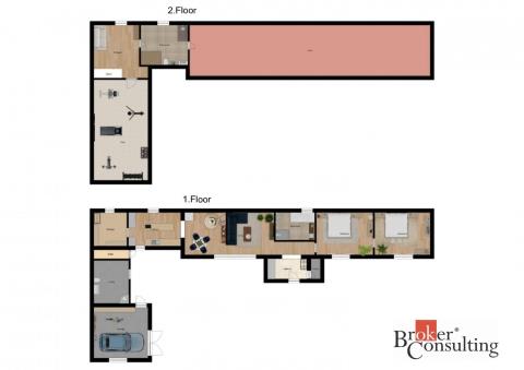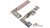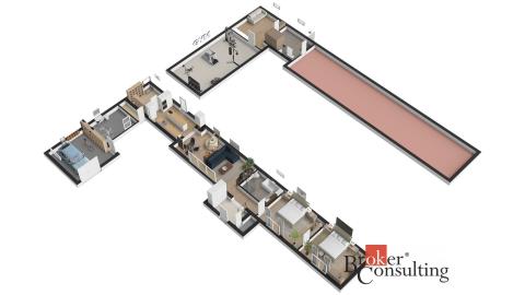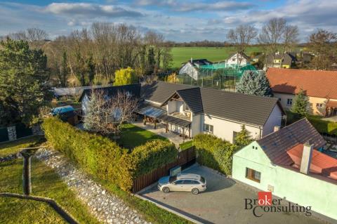 Exklusivně nabízíme komfortní bydlení severně od Prahy, v obci Zlonín, Praha - Východ. Prostorný dvoupatrový dům, který lze řešit i pro vícegenerační bydlení, se nachází v samotném centru obce, přitom nabízí absolutní soukromí. Pozemek je rovinatý o celkové rozloze 735 m2. Zahrada je příjemným místem pro odpočinek či vyžití dětí. Dům má celkovou plochu ve dvou nadzemních podlaží 291 m2. V současné době, je užíváno 218,8 m2 (145,5 m2 přízemí) a část domu v podkroví 73,28 m2. Druhá část podkroví (72,2 m2) nyní slouží majitelům jako půda, je zde připravena studie pro výstavbu další obytné části. To již bude na novém majiteli, aby si realizoval podle vlastních představ a nebo bude sloužit stejně jako dosavadním majitelům jako půda. Půdorysy nemovitosti jsou vypracované dle skutečného stavu, je i náhled na případný budoucí stav.