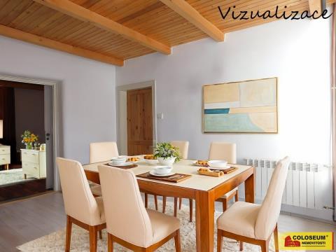 Exkluzivně Vám nabízíme k prodeji dům o dispozici 4+1 v blízkosti centra města Znojma. Dům je o přibližně užitné ploše 146 m2 se zahradou a dvorkem. Zdivo domu je z cihel a střecha z betonové tašky. Celkový stav domu je víc než dobrý. Okna na domě jsou plastová. V prvním patře naleznete obývací pokoj, kuchyň, koupelnu a pokoj. Ve druhém patře pak naleznete další dva pokoje. Toaleta je samostatná. Další velkou výhodou tohoto domu je, že má komoru a je podsklepený. Pro lepší představu o možném budoucím stavu jsme přiložili vizualizace interiéru a venkovního posezení. Vytápění domu je řešeno plynovým kotlem nebo krbovými kamny s výměníkem. Ohřev vody zajišťuje plynový kotel. Zahrada je oplocená drátěným plotem a na zahradě naleznete i zahradní domek, kam si můžete schovat třeba nářadí. Tento dům je vhodný pro rodiny, ale i jako investiční. Energetický štítek nám nebyl dodán, proto uvádíme třídu G. Veškeré uvedené plochy jsou přibližné a mají orientační charakter. Znojmo je moravské město v okrese Znojmo a obec s rozšířenou působností v Jihomoravském kraji na levém břehu řeky Dyje, 65 km jihozápadně od Brna a 83 km severozápadně od Vídně. Hranice s Rakouskem probíhá osm kilometrů od města. Na území města žije přibližně 34 tisíc obyvatel. Při osobní prohlídce zjistíte, zda je tento dům ten Váš vysněný. S financováním Vám rádi pomůžeme.