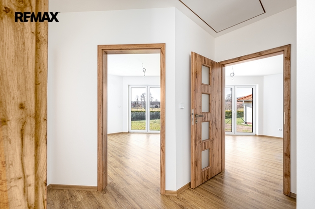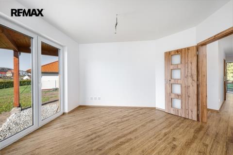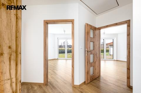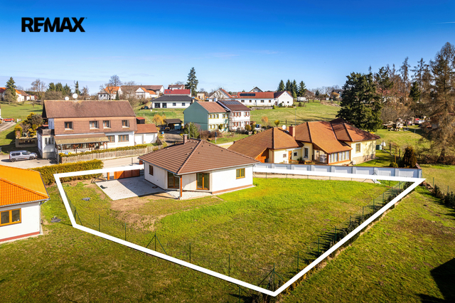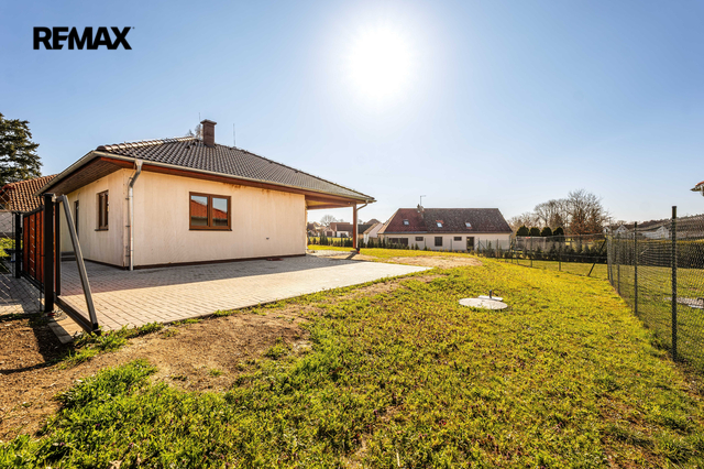 Nabízíme k prodeji novostavbu rodinného domu typu bungalov, v klidné, malebné jihočeské obci vzdálené 4 km od Lišova a pouhých 11 km z centra Českých Budějovic. Součástí oploceného pozemku o celkové výměře 931 m2 je nepodsklepený dům o zastavěné ploše 132,7 m2. Konstrukčním řešením se jedná o rámovou dřevostavbu se sendvičovou skladbou stěn s kvalitním zateplením, střešní konstrukce je se sbíjených vazníků, v části podkroví je vyřešen úložný prostor, betonová střešní krytina Bramac. Obytná část je dispozičně řešena jako 4+kk s užitnou plochou 114 m2: zádveří, technická místnost, dvě koupelny s WC, obývací pokoj s přípravou na kuchyňský kout se vstupem na zastřešenou, jižně orientovanou terasu, spíž a tři samostatné pokoje. Z chodby je výsuvnými schůdky přístup do podkrovního prostoru. Dispozici obytné části s rozměry jednotlivých místností najdete na přiloženém půdorysu. Vytápění je řešené teplovodními podlahovými rozvody, zdrojem tepla a ohřevu vody je tepelné čerpadlo. V obývacím pokoji je komín s přípravou na osazení krbových kamen. Objekt je napojený na obecní vodovodní řad, kanalizace je vyřešena vlastní čističkou odpadních vod s přepadem do obecní kanalizace. Prodává se vč. podlahových krytin (lepený vinyl), obložkových dveří a jedné koupelny s WC a sprchovým koutem. Druhá koupelna je připravena na dokončení dle představ nových majitelů. Dále bude potřeba dodělat fasádní nátěr a podlahu venkovní terasy. Součástí nemovitosti jsou dvě vydlážděná parkovací stání. Zahrada, díky velikosti i tvaru se přímo nabízí k osázení jak okrasnými, tak užitkovými rostlinami a je tam dostatek místa i pro bazén nebo jezírko. Komplexní občanská vybavenost je v Českých Budějovicích, kam jezdí pravidelná autobusová linka nebo v nedalekém Lišově. Ve Zvíkově je MŠ, restaurace a sportovní areál. Obec je obklopená lesy, množstvím rybníků a sítí cyklostezek a turistických tras. Nemovitost je vhodná zejména pro klienty, kteří chtějí bydlet v domě s velkou zahradou a preferují klidné bydlení, ale přitom v dosahu krajského města. Hlavní předností jsou kromě kvalitního provedení také nízké provozní náklady. V případě zájmu o bližší informace kontaktujte makléře nabídky. Prodávající si vyhrazuje právo vybrat kupujícího na základě jím zvolených kritérií.