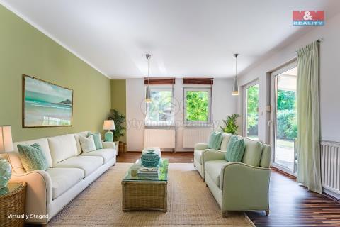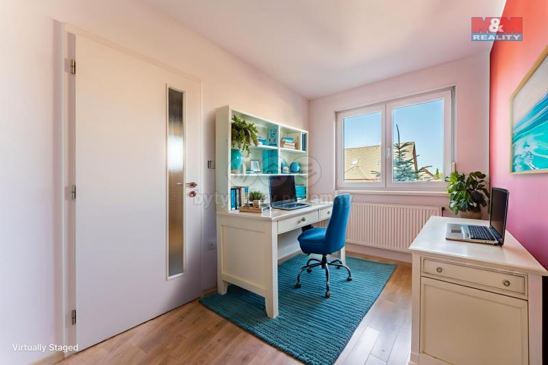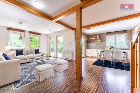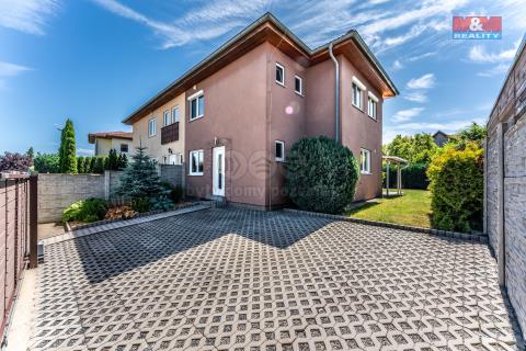 Nabízíme k prodeji moderní a pečlivě udržovaný rodinný dům v oblíbené a tiché části Chýně. Jedná se o kvalitní úspornou dřevostavbu s dispozicí 5+kk, dvěma koupelnami, komorou a celkovou užitnou plochou 113 m², rozloženou do dvou nadzemních podlaží. Dům je situován na pozemku o velikosti 284 m². Součástí domu je prostorná terasa s pergolou, ideální pro odpočinek a rodinné posezení, lodžie v 1.patře, dále praktická pochozí půda, zahradní domek a tři vlastní parkovací stání. Komfort bydlení zvyšují také předokenní rolety instalované v celém domě. Vytápění a ohřev vody zajišťuje plynový kotel, koupelny a chodbu navíc vytápí elektrické rohože. Celý dům je napojený na bezpečnostní službu Jablotron. Nemovitost se nachází ve velmi klidné lokalitě, která zajišťuje dostatek soukromí a zároveň dobrou dostupnost do Prahy i občanskou vybavenost v místě. Dům je ve výborném stavu a připraven k okamžitému nastěhování. Neváhejte a přijďte se podívat na místo, kde se budete cítit skutečně doma.