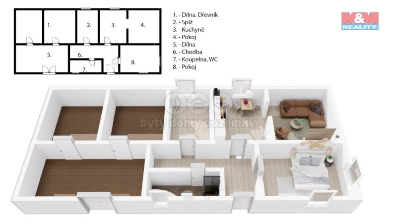 Nabízíme rodinný dům o dispozici 2+KK s možností rozšíření na prostorné 4+KK, s užitnou plochou cca 118 m² a pozemkem o velikosti 616 m². Nachází se v klidné části obce Buková u Protivanova. Dům je možné ihned využívat k rekreaci, zároveň by mu však rekonstrukce prospěla. Vytápění i ohřev vody zajišťuje kondenzační plynový kotel. Dům má plastová okna a je napojen na elektřinu, plyn, veřejný vodovod i kanalizaci. Součástí je koupelna s vanou, sprchovým koutem a WC, kuchyňská linka, sklep, půda, dílna a zahradní domek. Parkování je možné na pozemku, příjezd po zpevněné obecní cestě. K dispozici je také kopaná studna jako doplňkový zdroj užitkové vody. Klidná lokalita a dobrá dostupnost dělají z této nemovitosti výbornou příležitost k bydlení i rekreaci.