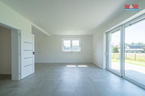 Prodej novostavby rodinného typu bungalov s dispozicí 4+kk v klidné části obce Horní Datyně. Dům je již připraven k nastěhování - zbývá pouze kuchyňská linka, která je již na výběru nového majitele a není součástí kupní ceny. Součástí domu je také kompletní oplocení včetně vjezdové brány a branky. Vytápění řešeno úsporným tepelným čerpadlem vzduch / voda, což zajišťuje nízké náklady na vytápění a ohřev teplé vody. Jedná se o kvalitní cihlový dům v příjemné části obce s prostornou zahradou o výměře 873m2. Před domem 2 parkovací místa s možností zvětšení či přístavby garáže. U tohoto domu je možnost odpočtu DPH. Cena včetně DPH. V okolí výborná dostupnost služeb i do centra města. Více informací a prohlídka u makléře.