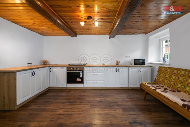 Nabízíme k prodeji samostatně stojící rodinný dům o dispozici 5+1 a užitné ploše 108 m², situovaný v klidné a příjemné části obce Oprechtice. K domu náleží zděná kůlna s domácí dílnou se samostatným vchodem s možností odkoupení dvora přímo od obce. Dům prošel v roce 1986 rozsáhlou rekonstrukcí. V roce 2022 proběhla kompletní výměna elektrických rozvodů, v přízemí zhotoveny nové betonové stěrky a rozvody vody v kuchyni. Přívod vody zajišťuje společná studna v blízkosti domu, odpadní vody jsou svedeny do septiku. Ohřev vody zajišťuje elektrický bojler. O teplo se postarají krbová kamna na dřevo a moderní podlahové infrafolie s možností ovládání přes mobilní telefon na dálku. Za zmínku stojí původně plně funkční pec. V obci je restaurace s častými kulturními akcemi. Nejbližší občanská vybavenost je v Domažlicích 10 km. Více informací Vám sdělí makléř. Rezervujte si svůj čas na prohlídkovém dni 05.08.2025. S financováním Vám rádi pomůžeme.