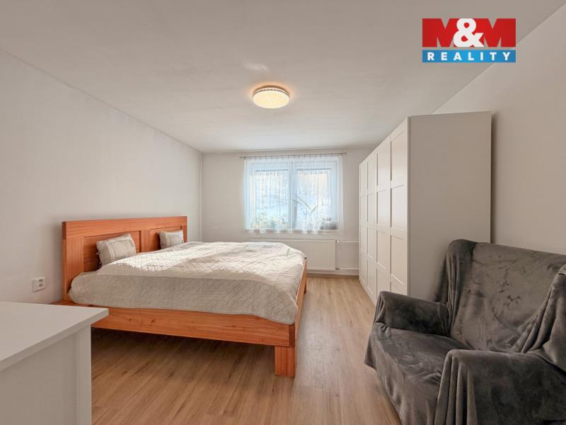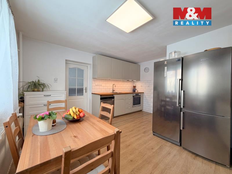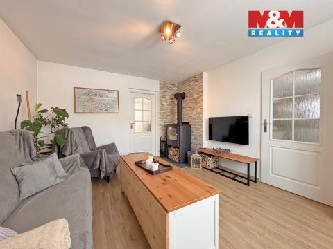 Nabízíme k prodeji rodinný dům v obci Petrovice u Uhelné Příbramě. Dispozice je řešena velmi funkčně. Po vstupu se nachází vstupní hala se samostatným WC, na kterou navazuje chodba. Z té je přístup do samostatné koupelny se sprchovým koutem, vanou a umyvadlem, dále do kuchyně s jídelním koutem a spíží, obývacího pokoje s krbovými kamny a ložnice s šatnou. Z chodby je také vstup do sklepa a schodiště do 1. patra. Dům je zhruba z 1/3 podsklepený – ve sklepě je umístěn kotel na tuhá paliva, elektrický bojler a tři akumulační nádrže na teplou vodu. 1. patro je v původním udržovaném stavu a nabízí skvělou příležitost k modernizaci podle představ budoucího majitele. Dům prošel rekonstrukcí v roce 2022, v rámci které byly provedeny tyto úpravy: plastová okna, vstupní a interiérové dveře, topení, elektro a vodoinstalace, podlahy (nové betony, nivelační stěrka, vinylové podlahy), vnitřní štukové omítky a SDK podhledy. Na dům navazuje vlastní garáž a součástí je také samostatná chata.