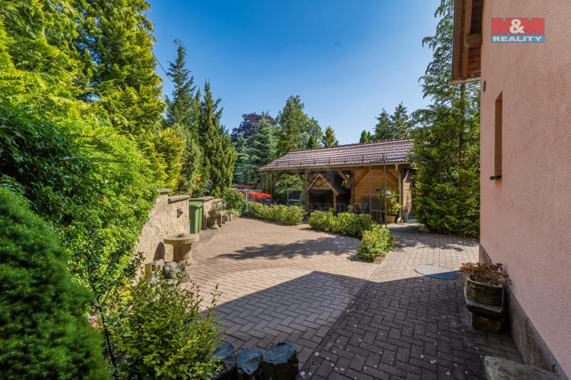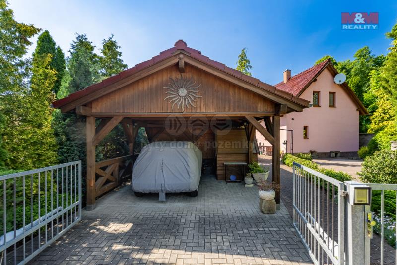 Nabízíme k prodeji atraktivní novostavbu rodinného domu v klidné a žádané lokalitě České Kamenice. Dům o užitné ploše 138 m² je situován na krásně upraveném pozemku o rozloze 799 m² s okrasnou zahradou, která poskytuje dostatek soukromí i prostoru pro relaxaci a rodinné aktivity. V přízemí domu se nachází moderní kuchyň, prostorný obývací pokoj propojený s jídelnou a přímým vstupem na slunnou terasu s pergolou, ideální pro posezení s rodinou či přáteli. Dále je zde koupelna se sprchovým koutem. V patře najdete komfortní ložnici, dva samostatné pokoje vhodné jako dětské či pracovny, a druhou koupelnu vybavenou vanou a WC. Půda je přístupná zateplenými, stahovacími schody a nabízí další úložný prostor. Interiér domu je laděn v přírodních tónech s důrazem na kvalitu použitých materiálů – v obytných místnostech jsou dubové parkety, stropy a podkroví jsou obloženy dřevem, točité schodiště i zábradlí jsou rovněž z masivního dubu. Dům je vybaven elektronickým zabezpečovacím systémem (EZS).