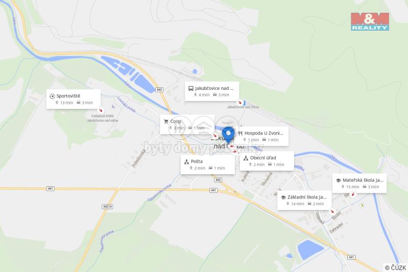 Nabízíme k prodeji rodinný dům v původním stavu, který se nachází v klidné části obce Jakubčovice nad Odrou. Dům má 2 nadzemní a jedno podzemní podlaží. V 1. NP i 2. NP se nachází kuchyň se spíží, obývací pokoj s balkónem, 2 samostatné pokoje, koupelna a samostatné WC. Ve sklepních prostorách je kotelna a garáž. Zahrada o ploše 474 m2 nabízí možnost odpočinku a relaxace. Dům je vytápěn kotlem na plyn, je připojen k veřejné kanalizaci. Ohřev vody je zabezpečen elektrickým bojlerem. V obci se nachází veškerá občanská vybavenost a je zde dobrá dostupnost do města Odry. Doporučujeme si prohlídku předem domluvit.