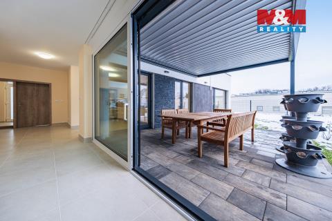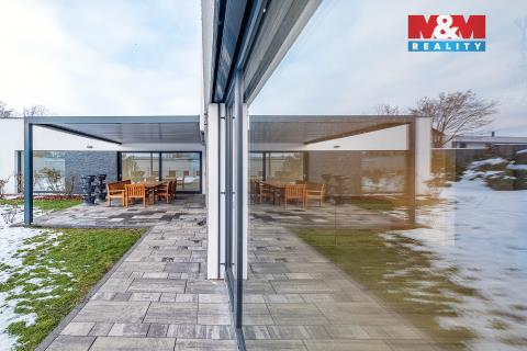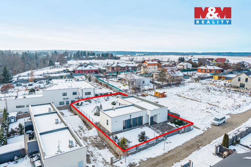 Prodej designové přízemní vily v klidných Doubravčicích, jen pár minut od Říčan. Podlahová plocha 163 m², pozemek 877 m² – ideální pro komfortní rodinné bydlení. Moderní architektura, kvalitní provedení a promyšlená dispozice: vzdušný obývací prostor s jídelnou a kuchyní, přímý vstup na krytou terasu a do zahrady, samostatné pokoje, 2 koupelny, šatní prostory a technické zázemí. Velké prosklené plochy přinášejí maximum denního světla, předokenní žaluzie soukromí i stínění. Nízkoenergetické provedení + fotovoltaická elektrárna, podlahové vytápění v celém domě. Bioklimatická pergola na dálkové ovládání podtrhuje atmosféru venkovního posezení. Pro více informací a termín prohlídky mě kontaktujte.