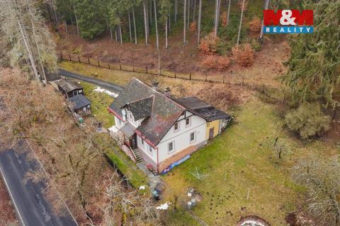 Nabízíme k prodeji samostatně stojící rodinný dům v Podhradí u Aše, situovaný v klidné části obce u lesa a nedaleko Smrčin. Dům disponuje dvěmi bytovými jednotkami – jedna se nachází v přízemí a druhá v 1. patře, což umožňuje komfortní vícegenerační bydlení nebo kombinaci vlastního užívání a pronájmu. Celková užitná plocha domu činí cca 165 m², k domu náleží rozlehlý pozemek o výměře 2 022 m². Přízemí nabízí obývací pokoj, kuchyni s jídelnou, ložnici, koupelnu, samostatné WC, dílnu, garáž a technické zázemí. V patře je druhý byt s kuchyní, pokoji a příslušenstvím. Dům je podsklepen, k dispozici je také prostorná půda vhodná k vestavbě. Vytápění je řešeno krbovými kamny i kotlem na tuhá paliva, elektřina 230/400 V, voda z vlastní kopané studny, odpad řešen septikem. Klidná lokalita s výbornou dostupností do Aše i k německým hranicím. Ideální jako investice i pro dvougenerační bydlení. Možnost úprav dle vlastních představ Pro více informací kontaktujte makléře!