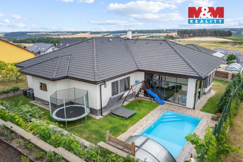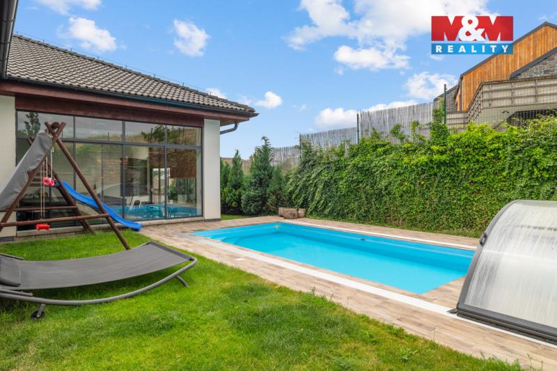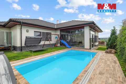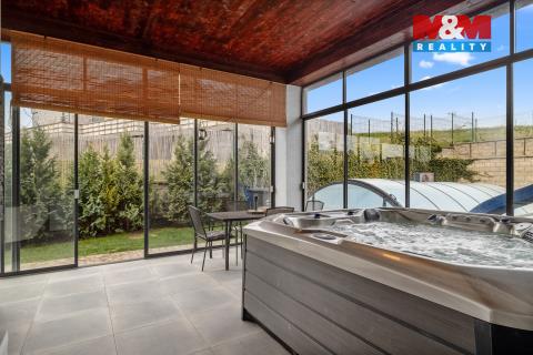 Prodej výjimečného rodinného domu (5+kk, 166 m²) z roku 2019 v Netovicích. Moderní technologie, maximální pohodlí a klid. Obývací část navazuje na zimní zahradu orientovanou na jihozápad s krytým vyhřívaným bazénem a vířivkou. Wellness: zimní zahrada s vířivkou, krytý bazén s protiproudem, večerní osvětlení a venkovní posezení. Technologie: teplené čerpadlo, ohřev vody IVT, fotovoltaika s akumulací, centrální vysavač, automatická závlaha, krbová kamna. Komfort:5 místností + garáž 32 m², prostorná kuchyň, inteligentní řízení domu, pojezdová brána, parkování pro 4 auta, vše na jednom podlaží. Ekologie: energetická třída B, nízké měsíční náklady díky FVE a TČ, pozemek 932 m². Soukromí: kompletní oplocení, klidná část obce, minimum sousedů. Dům byl navržen pro minimální provoz a maximální komfort – perfektní pro milovníky relaxu a úspor.