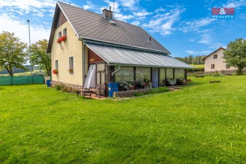 Nachází se v klidné lokalitě Hrabice u Vimperka, což nabízí ideální kombinaci klidného venkovského prostředí, přístupu do města Vimperk - s veškerou občanskou vybaveností a blízkost Šumavského národního parku - výlety do přírody, sporty. Jedním z hlavních lákadel této nemovitosti je rozlehlá zahrada 1986 m2, která nabízí dostatek prostoru pro různé aktivity a má potenciál pro případné další stavby. Interiér domu je pojatý v rustikálním stylu, s dřevěným vybavením v podkroví. Toto dodává domu příjemnou atmosféru a vytváří útulné prostředí. Topení je zajištěno krbem s výměníkem, což umožňuje efektivní vytápění v chladnějších obdobích, je zde k dispozici i možnost vytápění plynem, což přináší flexibilitu a pohodlí. Dům nabízí pěkný výhled do okolí, což může být příjemným bonusem pro budoucí obyvatele. V neposlední řadě je třeba zdůraznit možnost dvougeneračního bydlení, což dává prostor pro rodiny s různými potřebami. Více informací rádi poskytneme. Při rychlém jednání možná sleva!