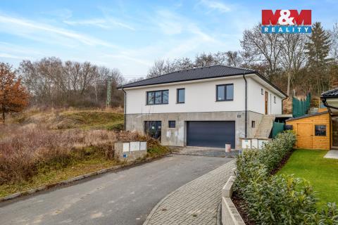 Hledáte prostorný dům v přírodě a přitom kousek od Prahy? Nabízíme novostavbu 5+kk z roku 2024 v obci Ledce, pouhých 20 minut od hlavního města. Nachází se na konci slepé ulice pod lesem, takže poskytuje klid i maximální soukromí. Pozemek má 1.296 m². V 1. nadzemním podlaží o 97 m² naleznete garáž pro 2 vozy s elektrickými vraty, velkou šatnu, technickou místnost, sklad a zejména samostatnou jednotku s vlastním vchodem, WC a možností vybudovat koupelnu – ideální jako garsonka, kancelář či prostor pro podnikání. Ve 2. nadzemním podlaží (119 m²) je ložnice s vlastní šatnou, dětský pokoj, pracovna, dvě koupelny, komora a obývací pokoj s kuchyní na míru a se vstupem na terasu. Kolem domu se rozprostírá prostorná zahrada s nádherným výhledem do okolí, která čeká na vybudování dle nového majitele. Dům je napojen na obecní vodovod i kanalizaci, vytápění zajišťuje podlahové topení a krbová vložka. Ohřev teplé vody přes plynový kotel. Nechybí příprava na fotovoltaiku ani venkovní žaluzie.