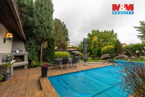 Nabízíme k prodeji luxusní rodinný dům v klidné části Třebovic na ul. Krameriova. Tento dům o celkové užitné ploše 298 m² zahrnuje dvě samostatné bytové jednotky a je ideální pro rodinné bydlení nebo investici. První jednotka v podkroví nabízí dispozici 3+KK s koupelnou, WC, šatnou a balkonem. Druhá jednotka, umístěná od mezipatra, zahrnuje tři pokoje, koupelnu, WC, velkou šatnu a balkon. Přízemí dominuje prostorný obývací pokoj s kuchyní a jídelnou, který je propojen s terasou a venkovním bazénem. Suterén obsahuje garáž a technickou místnost. Zahrada o ploše 884 m² nabízí přístřešek pro auta, okrasnou část a zahradní domek. Dům je vytápěn plynovým topením s radiátory KPT-D Hydronic.