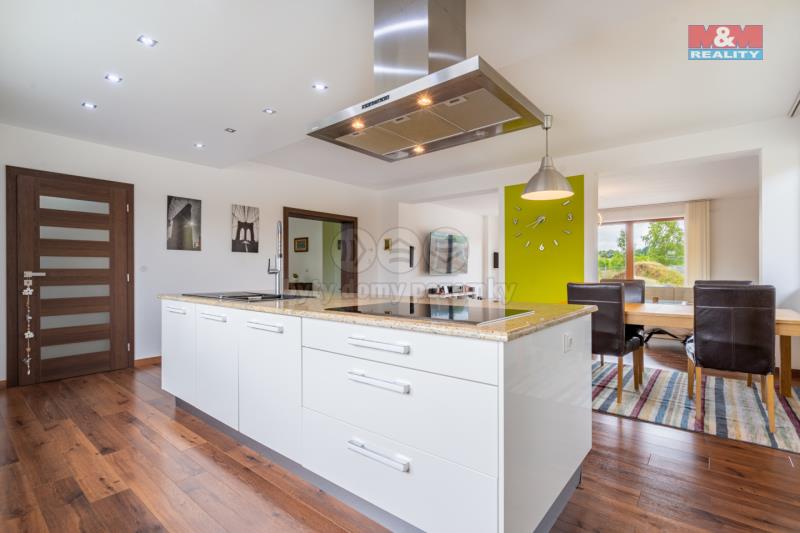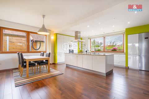 Hledáte výjimečný rodinný dům, který naplní Vaše představy? Nabízíme ho v klidné části Tábora – Čelkovicích. Majitel dům neustále zvelebuje a posouvá dál. Nemovitost s dispozicí 8+kk, dvojgaráží a podlahovou plochou 440 m² je situována v prestižní ulici V Polích. Dům z roku 2012 leží na rovinatém, slunném pozemku o výměře 1006 m² s krásným výhledem do přírody. Vytápění zajišťuje moderní tepelné čerpadlo pro úsporný provoz, komfort doplňuje centrální vysavač. Dispozice: 1. NP – velký obývací pokoj s kuchyní, koupelna, vstupní hala a variabilní místnost (ložnice, pracovna či wellness). 2. NP – dva dětské pokoje, hlavní ložnice s balkonem, šatna a koupelna s rohovou vanou. V podsklepení najdete společenskou kino-místnost, vinný sklípek, technickou místnost a fitness. Zahrada nabízí zázemí pro děti, relax i posezení s přáteli. Lokalita poskytuje naprostý klid i soukromí.