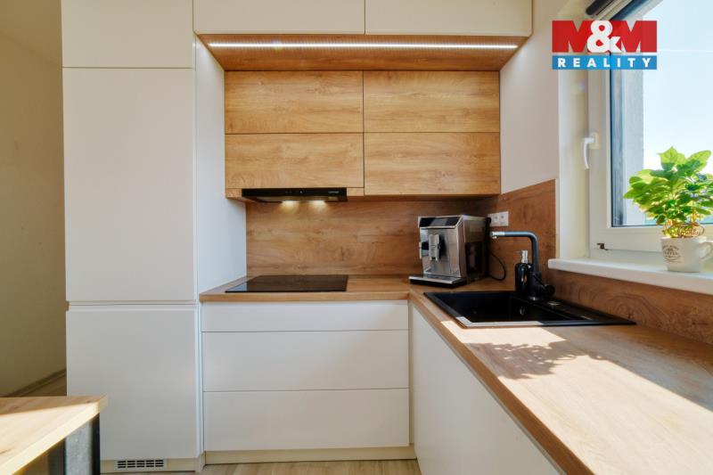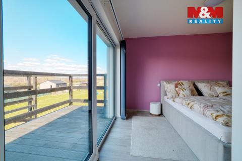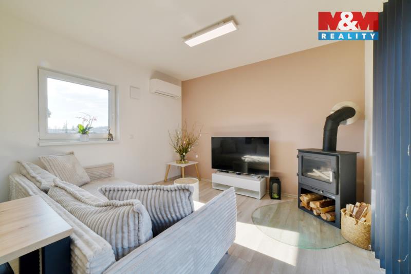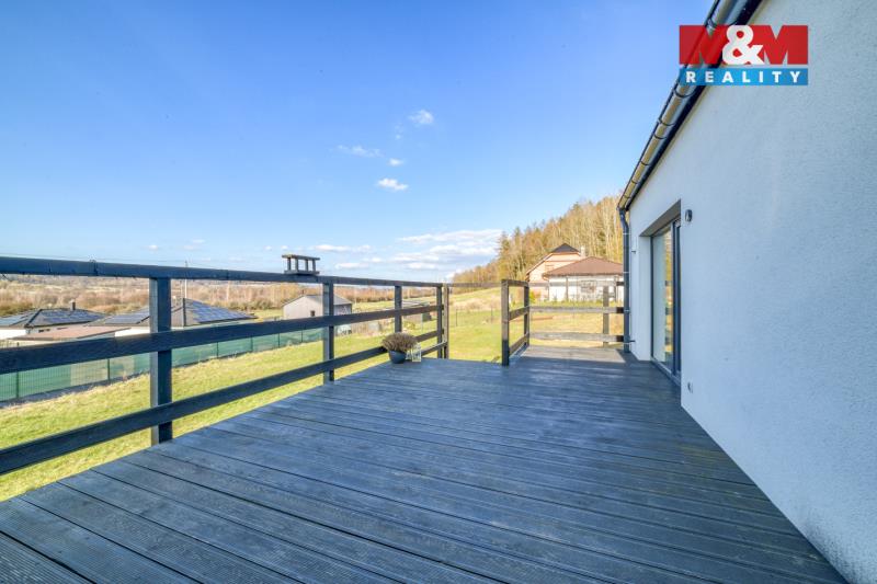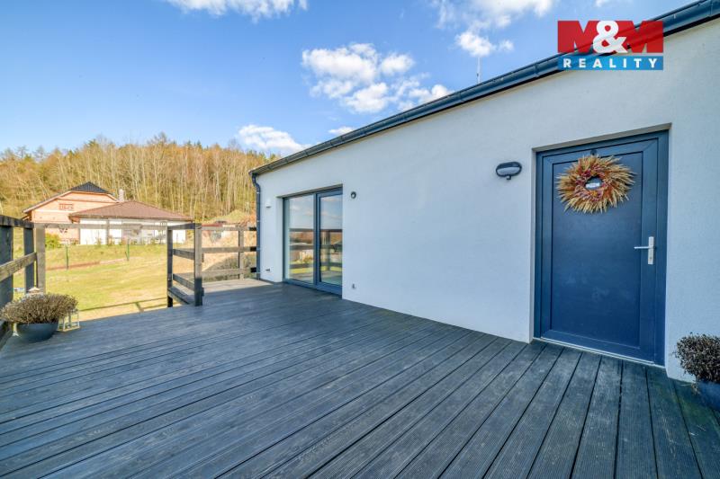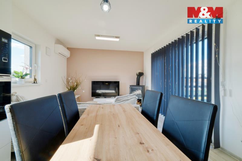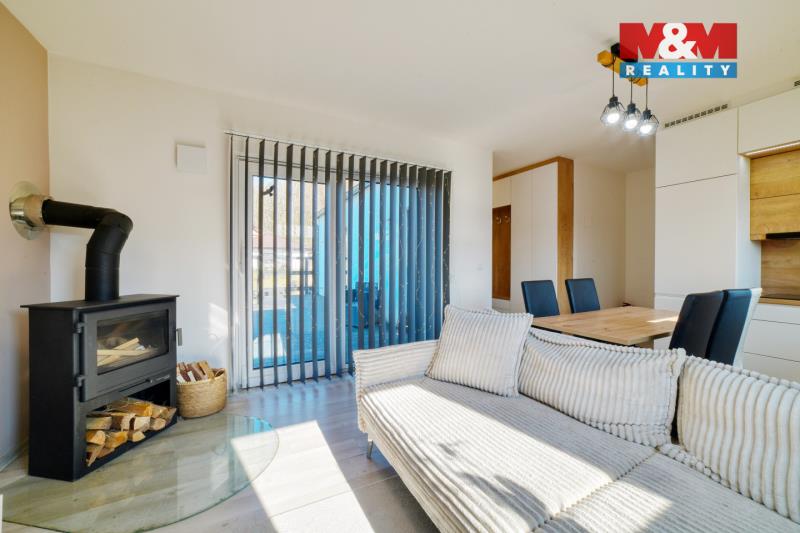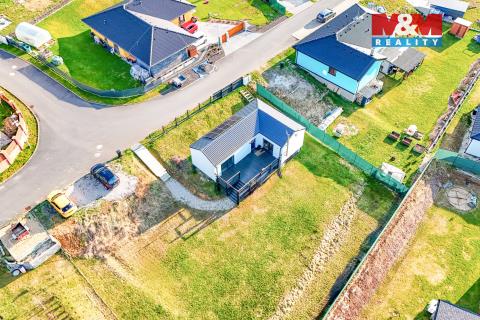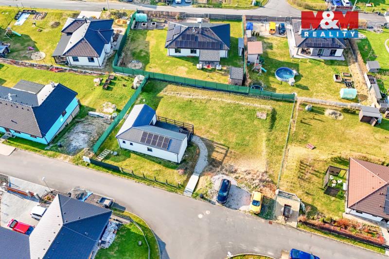 Hledáte bydlení v menším rodinném domě s prostornou zahradou? Nabízíme novostavbu (kolaudace 2022) o dispozici 3+kk, která se nachází v obci Šabina, cca 7 km od Sokolova. Jedná se o nepodsklepenou dřevostavbu s jedním nadzemním podlažím, půdorysu tvaru „L“, s otevřenou terasou o výměře 32 m², ze které je přímý vstup do domu. Dům o podlahové ploše 54,74 m² nabízí obývací pokoj s kuchyňským koutem, ložnici, samostatný pokoj a koupelnu s WC. Vytápění je řešeno kombinací elektrického podlahového vytápění a krbových kamen jako doplňkového zdroje. Komfort zvyšuje klimatizační jednotka a rekuperační jednotky v pokojích. Ohřev vody zajišťuje elektrický bojler. Na jižní straně střechy je instalován fotovoltaický systém. Z ložnice a obývací části je přímý vstup přes velká posuvná okna na terasu, ze které se nabízí krásný výhled do okolí. Parkování cca pro 3 auta je možný na zpevněné ploše. Pozemek o výměře 967 m² je mírně svažitý a má pravidelný obdélníkový tvar. V případě zájmu nás kontaktujte.