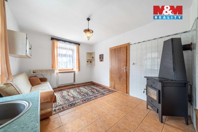 Nabízíme k prodeji rodinný dům o dispozici 3+kk na pozemku o celkové výměře 827 m², který kombinuje poctivou smíšenou konstrukci. Dům je napojen na veřejný vodovod a k dispozici je i vlastní jímka na užitkovou vodu, přičemž odpad je v současné době řešen žumpou. Interiér nabízí rozvody vody v plastu, elektřinu v mědi a částečně vyměněná dřevěná okna. O vytápění se stará kombinace elektrokotle a kamen s teplovodním výměníkem, vše napojené na radiátory a ovládané centrálním termostatem. Velkou předností nemovitosti je půda nad plochou domu, která přímo vybízí k vestavbě dalších obytných místností. K domu náleží rozsáhlé vedlejší prostory jako stodola, dílna, kolna a sklep. Na zahradě se navíc nachází samostatný zahradní domek (25 m²) s posezením, grilem, vlastními kamny a zavedenou elektřinou. Tato nemovitost představuje ideální příležitost pro ty, kteří hledají bydlení s možností rozšíření a bohatým technickým zázemím.