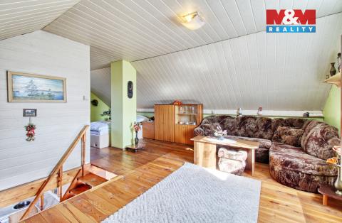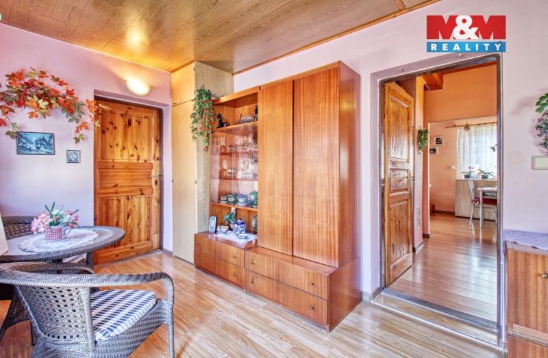 Nabízíme k prodeji rodinný dům, který představuje ideální volbu pro ty, kdo hledají klid, soukromí a příjemné zázemí se zahradou. Po vstupu do domu vás přivítá předsíň s praktickým úložným prostorem. Odtud se dostanete do chodby vedoucí do koupelny se sprchovým koutem a toaletou. Srdcem domu je světlý obytný prostor tvořený kuchyní s jídelním koutem, která plynule navazuje na obývací pokoj. Dominantou jsou krbová kamna, která slouží jako hlavní zdroj vytápění a vytvářejí příjemnou atmosféru. Z obývacího pokoje je přístup do patra se spací a relaxační zónou. K domu náleží zahrada o výměře 407 m² nabízející prostor pro odpočinek, zahradničení i rodinné aktivity. Na pozemku se nachází zahradní domek, kůlna na nářadí, kůlna na dřevo a pergola s grilem. Dům má vlastní vodu z vrtané studny i napojení na vodovodní řad, odpad je řešen vlastní čističkou odpadních vod. Pro více informací nebo domluvení prohlídky nás neváhejte kontaktovat.