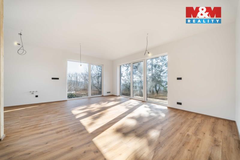 Nabízíme k prodeji zkolaudovanou novostavbu rodinného domu o dispozici 3+kk a o užitné ploše 85 m² v atraktivní lokalitě Zdejcina u Berouna, situovanou na pozemku o výměře 532 m². Nemovitost zaujme především svou polohou nad řekou Berounkou s krásnými výhledy do okolní krajiny a zároveň výbornou dostupností do Prahy (cca 30 minut). V přízemí domu se nachází prostorný obývací pokoj s kuchyňským koutem, koupelna s WC, technická místnost a vstupní část. V patře jsou dva pokoje, ložnice, šatna a druhá koupelna s WC. Dům je vytápěn teplovodním podlahovým topením napojeným na elektrokotel, ohřev vody zajišťuje bojler. Konstrukce je zateplena moderní PUR pěnou, což zajišťuje velmi dobré tepelněizolační vlastnosti. Odpad je řešen septikem, voda je přivedena z nádrže umístěné na pozemku. Klidná lokalita v přírodě s výbornou dostupností do města činí z této nemovitosti ideální bydlení i rekreaci. Ráda Vás uvítám na prohlídce.