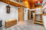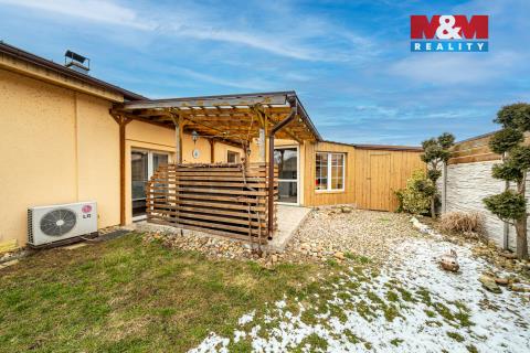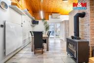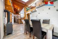 Představuji Vám k prodeji řadový (rohový) dům v klidné lokalitě, který zaujme především svým netradičním mezonetovým uspořádáním. Dům je řešen jako jednopodlažní s obytnými galeriemi. Dispozice domu tvoří vstupní předsíň, ložnice situovaná v přízemí, koupelna, kuchyně s jídelním prostorem a dětský pokoj, ze kterého vedou schody do horního prostoru určeného ke spaní. Obývací pokoj je řešen rovněž mezonetově - hlavní obytná část se nachází ve zvýšeném podlaží a dále navazuje další vyvýšený prostor, který může sloužit jako relaxační místnost. Z obytné části je vstup na pozemek se zastřešenou pergolou. Na dům navazuje menší zahradní domek se saunou a praktická kůlna pro uskladnění náčiní. V přední části domu se nachází garáž s instalovanou nabíječkou pro elektromobil. Parkování je možné jak v garáži, tak přímo na pozemku před domem. Vytápění zajišťují krbová kamna a elektrické přímotopy. Pro více informací neváhejte kontaktovat makléře.