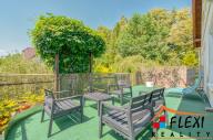 Přízemí vily prošlo rozsáhlou rekonstrukcí, kdy vznikla prostorná bytová jednotka o dispozici 3+kk s jídelnou, vlastní koupelnou, toaletou a úžasnou terasou a lodžií s výhledem na celý pozemek.