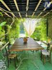 Skvostem zahrady je velký bazén, u kterého vyvěrá vlastní pramen. K domu patří také garáž, zahradní altán, dřevník a tradiční venkovní pec na pizzu. Na pozemku je artézská studna zajišťující dostatek vody pro údržbu zahrady, cypřišového háje a ovocného sadu.