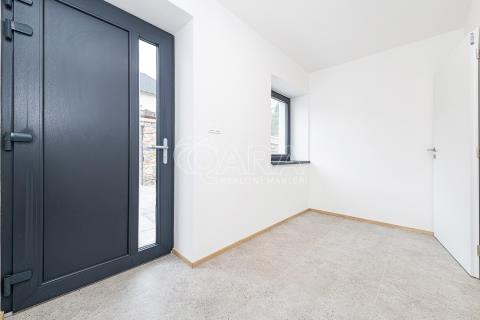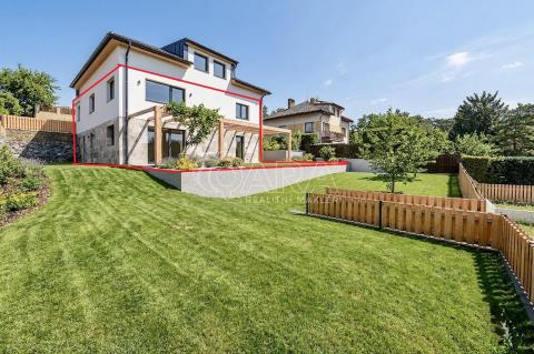 Při vstupu do tohoto bytu o dispozici 5 +kk a rozloze 170 m² okamžitě pochopíte, že tady se na rekonstrukci nešetřilo. Každý detail byl promyšlen tak, aby lahodil oku i duši. Přízemí domu zdobené přírodním travertinem, dubové schodiště a sedmikomorová okna, která dovnitř propouštějí jen ticho a světlo to vše tvoří harmonický celek připravený pro vaše nové kapitoly.