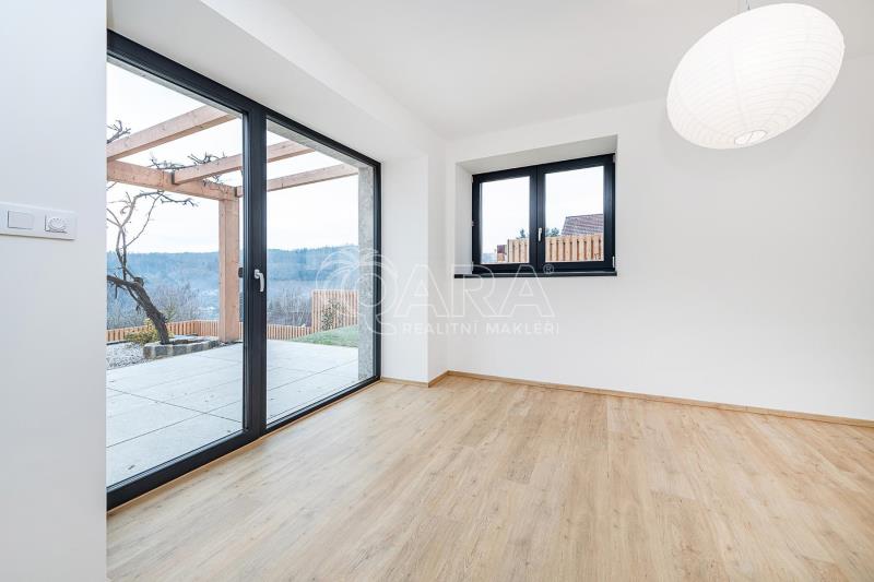 Pro páry milující styl: Užijte si velkorysý obývací pokoj s přilehlou terasou, kde se sklenka vína s přáteli mění v nezapomenutelný zážitek. Moderní design, výhled na lesy a horizont a zahrada bez nutnosti složité údržby jsou definicí svobody.
