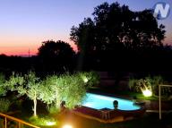 Celá nemovitost je obklopena 3 600 m² oploceného, pečlivě udržovaného pozemku. Zahrada je osázena tradičními olivovníky, ovocnými stromy a záhony plnými květin, které dotvářejí pravou středomořskou atmosféru. Klenotem venkovního prostoru je sluncem zalitý bazén s jedinečným výhledem do kraje. Bazén má rozměry 5 x 10 m a je vybaven solnou filtrací. Na pozemku je vydatná studna a automatický zavlažovací systém.
